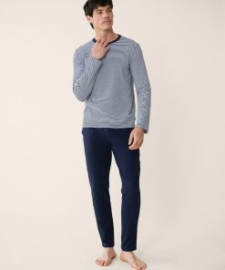 Le Slip Français Men’s Navy Blue Cotton Sailor Top And Shorts Pajama Set – Jeason Pyjamas Sho | Blue
