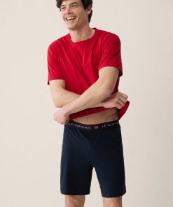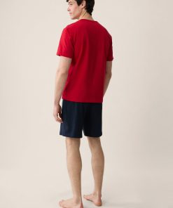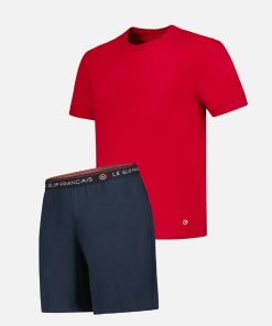 Le Slip Français Men’s Pyjamas Red T-shirt And Navy Cotton Shorts Pajama Set – Tremendous Cherry Red | Blue