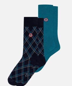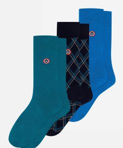 Le Slip Français Men’s Pack Of 3 Mid-calf Cotton Socks – Topaz Tartan Socks Turquoise Blue | Blue