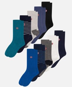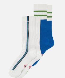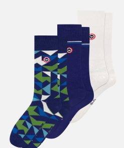 Le Slip Français Men’s Pack Of 3 Mid-calf Cotton Socks – Indigo Mosaic Line Socks Indigo Whit | Blue