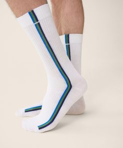 Le Slip Français Men’s Navy Blue Mid-calf Socks With White Stripes – Robust Navy White Stripe | Blue